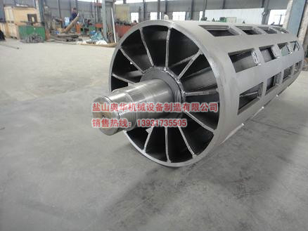 Cleaning slag drum for belt conveyor to change to the drum, also apply to do by surface roller, with the conveyor belt to prevent the adhesion of the material on the conveyor belt of the material has a good cleaning effect, cleaning out the adhesion The object can fall outside the tape through the tapered surface of the drum, avoiding secondary sticking of the tape. The slagging drum adopts the unique design structure, and the welding adopts automatic welding equipment. The welding quality is excellent and the strength is high. The product is annealed at medium temperature to eliminate the stress, the residual stress is small and the service life is long.